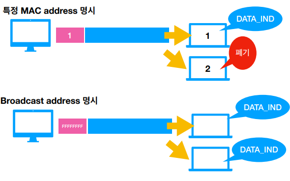 - FFFFFFFF로 표시하면 모든 field가 1이므로 braodcasting이므로 모든 device에 보내진다.