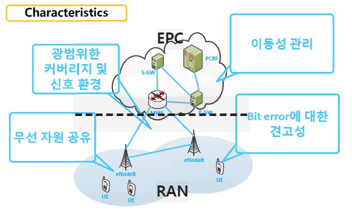 - 이동성 관리하니까 우리나라가 하나의 cell로 보여질 수도 있다. → 광범위한 커버리지 및 신호환경