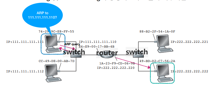 - 222.222.222.222의 mac addr? : c의 L3에서 ARP module에 문의한다