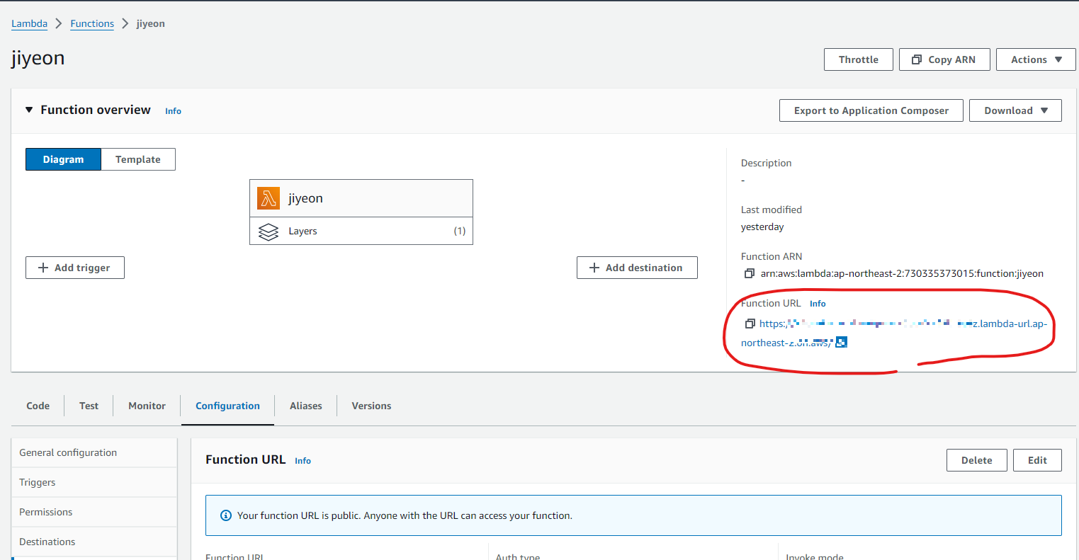 그럼 이제 AWS lambda 함수url을 생성하는 방법을 알아보자.