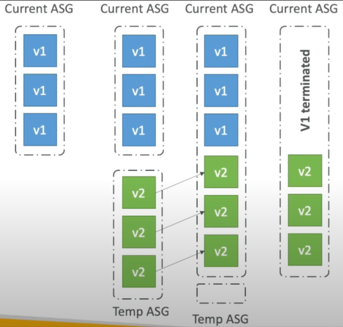 이미 갖고있는 인스턴스 수 안에서 점진적 배포에 해당하기에 추가 비용 발생이 없고, 가용성이 좋다.
