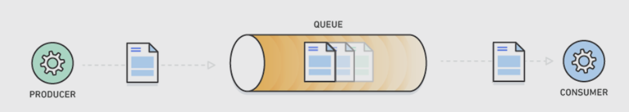 Producer 는 메세지(요청)를 발행하고, Queue 는 메세지를 저장하는 버퍼에 해당하며, Consumer 는 메세지(요청)을 처리