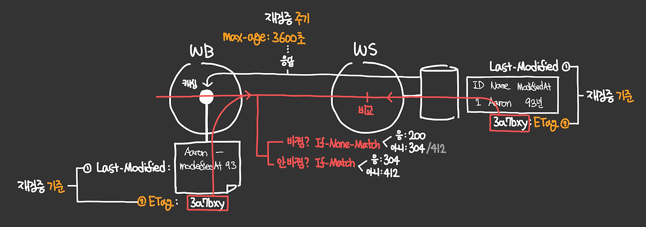 🔹재검증 시 캐시 소유자(웹 브라우저): If-Match(같아?)