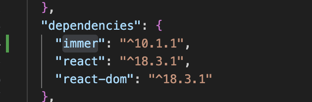 package.json에 immer가 생겼다면 immer를 사용할 수 있다.