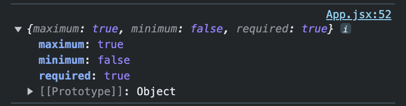 console.log(changed)를 해보면 아래 사진과 같이 객체가 반환되는 걸 볼 수 있다.(maximum, required가 true로 변경된 경우이다)