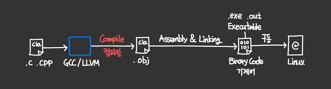 먼저 프로그램이 동작하는 기본 원리를 집자면, 기계어가 머신에서 (해석되어) 실행되는 것이다.