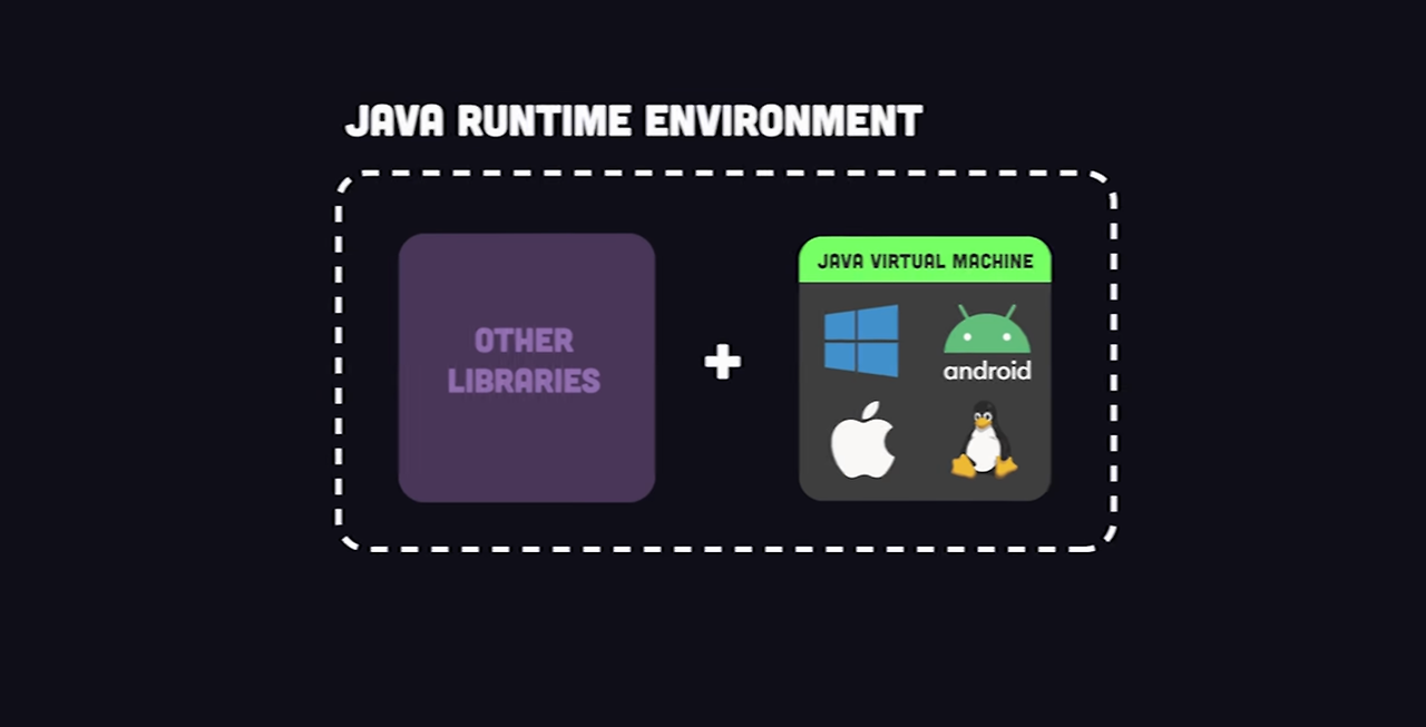- JRE: Other Libraries(API) + JVM(Java Virutal Machine)