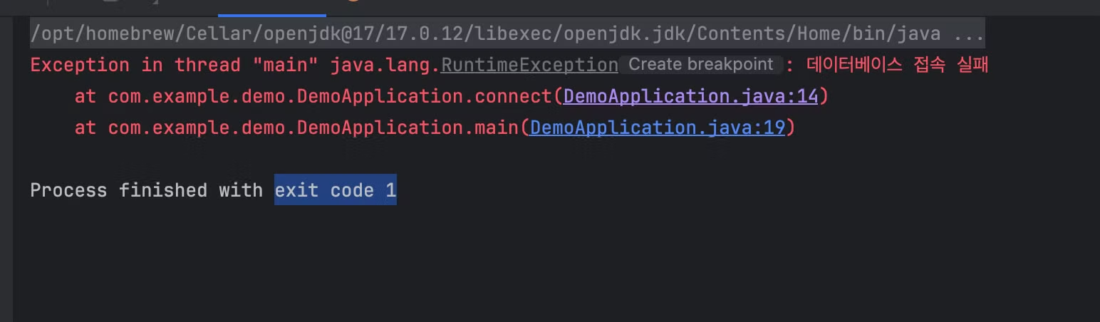 예외가 발생하하면 터미널에 아래 사진과 같이 exit code 0 | 1 이 뜰 것이다.