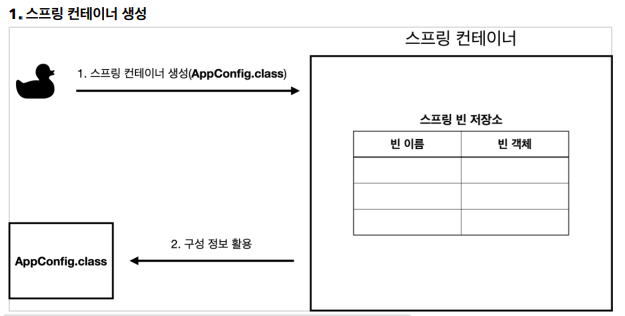스프링 컨테이너는 파라미터로 넘어온 설정 클래스 정보(AppConfig.class)를 사용해서 스프링 빈을 등록한다.