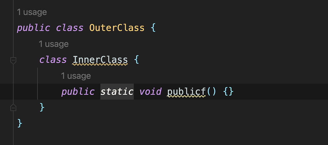 - 정적 (Nested) 클래스가 아니라면: 상위 클래스 인스턴스화를 해야하므로 아래 코드 같이 new new 두번 인스턴스화를 해야한다.