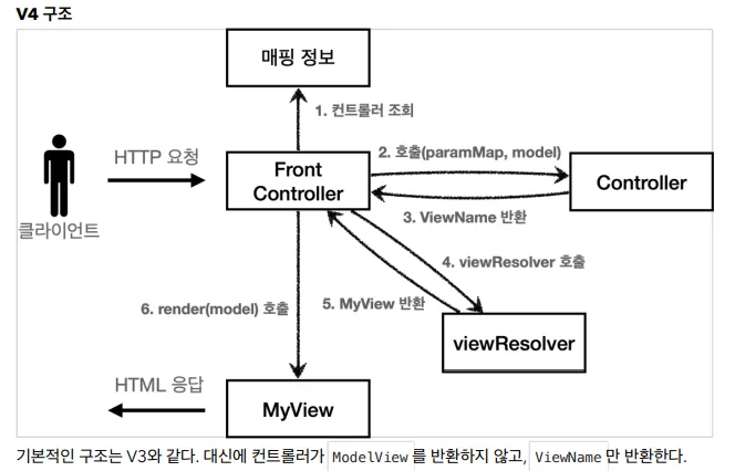 V4구조 처럼 프론트 컨트롤러에서 요청에 대한 매핑 정보를 가져온 후 바로 해당 컨트롤러를 호출하면 되지 않나?