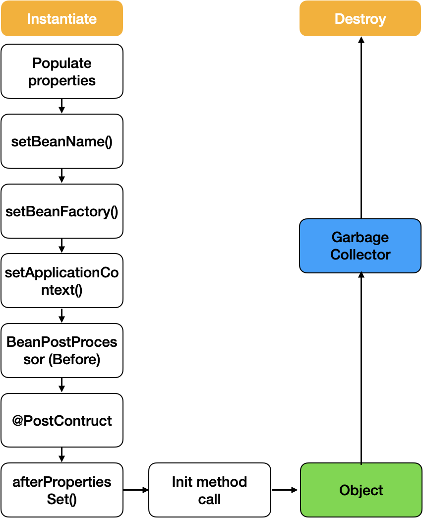 Spring Bean: 개발자가 직접 객체 생성한게 아니라 Spring 이 대신 객체 생성 주입 해주는 단위