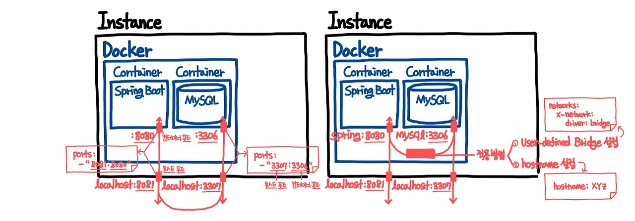 - 도커 내에 생성된 user-defined netword에서 포트를 사용하겠다