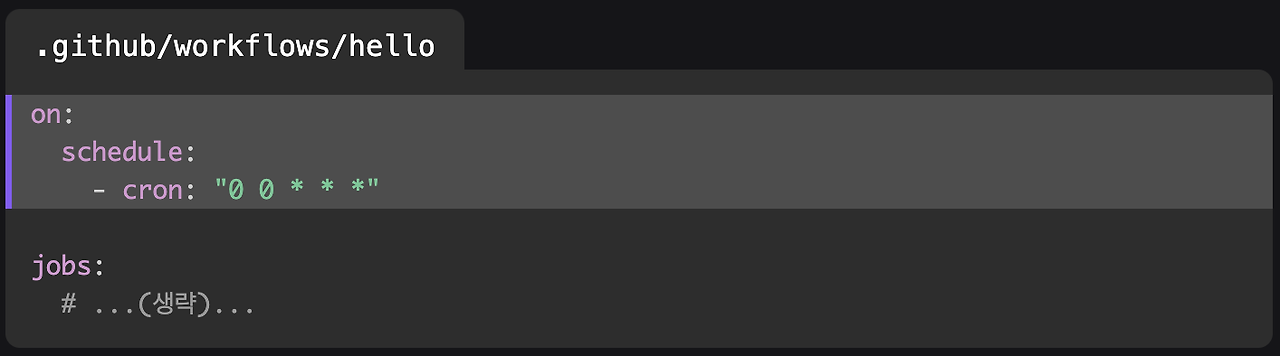 - 시간 기준: cron 문법을 통해 언제 몇시 몇분마다 수행할 것인지 스케줄에 따라 작업 수행
