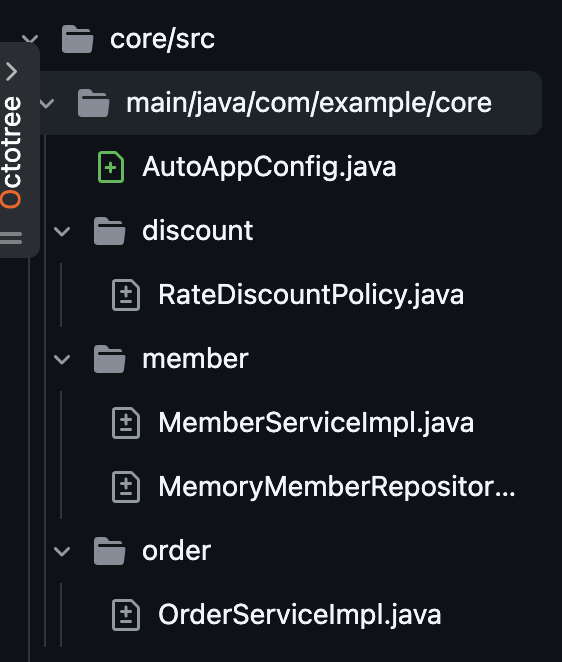 프로젝트 최상단에 AutoappConfig.java가 있으므로 프로젝트에서 컴포넌트로 등록해준 것을 다 빈으로 등록한다.