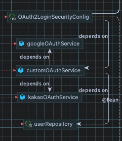 1. OAuthService와 UserRepository 빈 주입이 필요한 CustomOAuthUserService를 Config에 빈으로 등록
