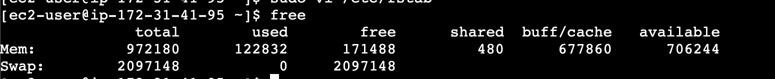 swap 부분을 확인하면 스왑 메모리가 할당된걸 확인할 수 있다.