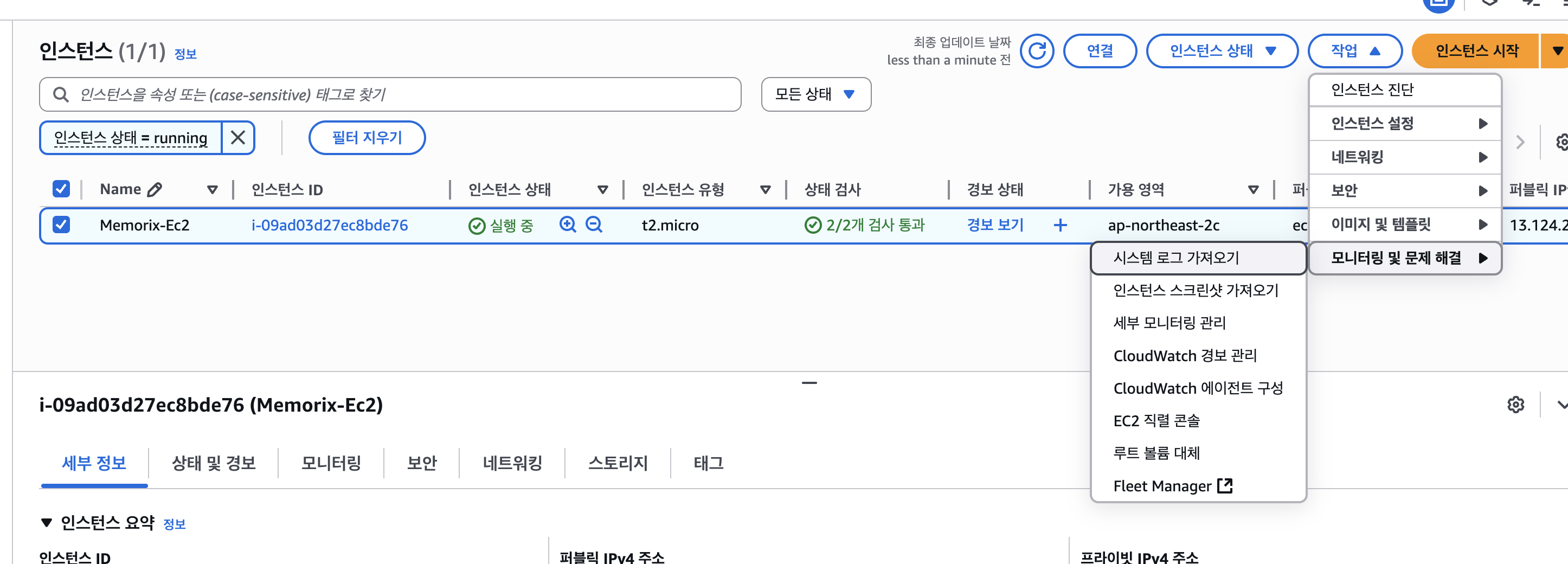 문제의 인스턴스를 선택해서 시스템 로그를 확인했다.