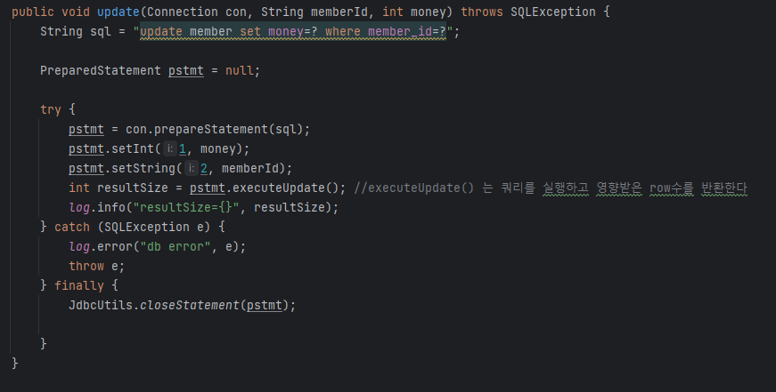 memberRepository.update(con, toId, toMember.getMoney() + money);