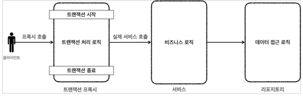 프록시를 사용하면 트랜잭션을 처리하는 객체와 비즈니스 로직을 처리하는 서비스 객체를 명확하게 분리할 수 있다