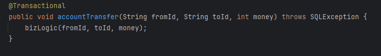 @Transactional 애노테이션은 메서드에 붙여도 되고, 클래스에 붙여도 된다. 클래스에 붙이면 외부에서 호출 가능한 public 메서드가 AOP 적용 대상이 된다