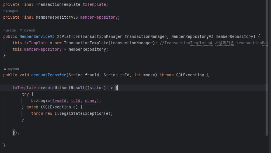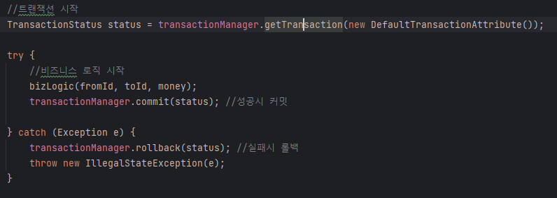 프록시를 도입하기 전에는 기존처럼 서비스의 로직에서 트랜잭션을 직접 시작한다