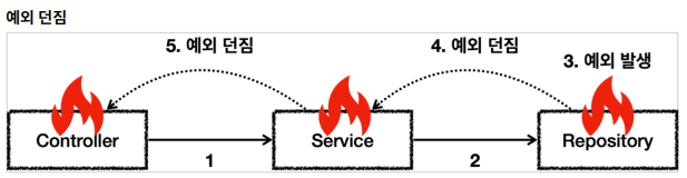 예외를 처리하지 못하면 호출한 곳으로 예외를 계속 던지게 된다.