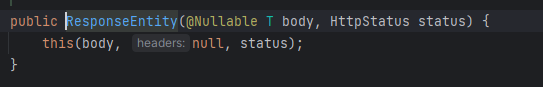 ResponseEntity 엔티티는 HttpEntity 를 상속 받았는데, HttpEntity는 HTTP 메시지의 헤더, 바디 정보를 가지고 있다. ResponseEntity 는 여기에 더해서 HTTP 응답 코드를 설정할 수 있다.