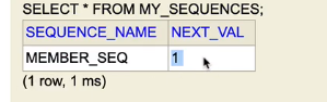 | sequenceName | 데이터베이스에 등록되어 있는 시퀀스 이름 | hibernate_sequence |