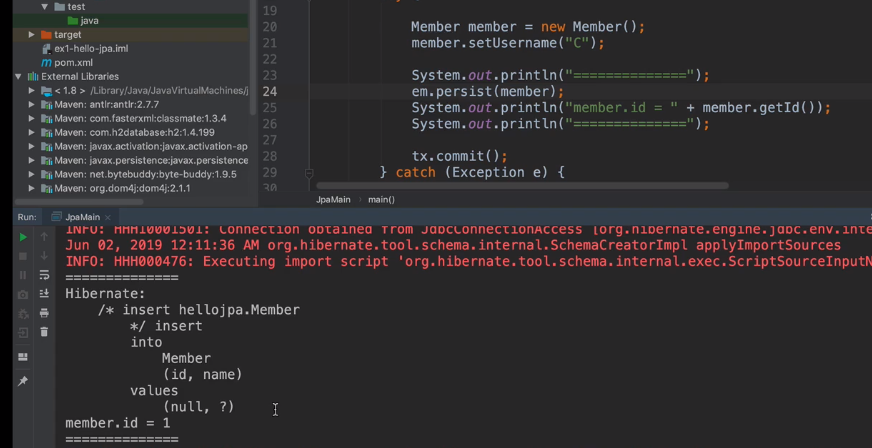 em.persist할 때 db에서 값을 얻어서 member에 id 값을 넣어준다. 그 다음 영속성 컨텍스트에 넣어준다.