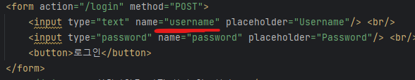 여기서 파라미터로 있는 username은 loginFrom.html에서 로그인시 넘기는 <input>태크의 name속성 명과 같아야한다.