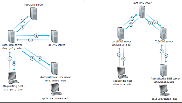 - (6, 7번) cis.poly.edu에 해당하는 ip는 poly.edu를 담당하는 server가 cis.poly.edu의 접두사의 ip address는 cis.poly.edu안에 있는 DNS server에게 물어보라는 역할