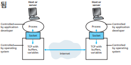 - socket은 application과 transport layer의 연결점. socket을 열어서 인터넷에 접속