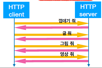 HTTP는 기본적으로 client가 server에게 hypertext의 구성요소를 하나씩 요청해서 받아가는 형태