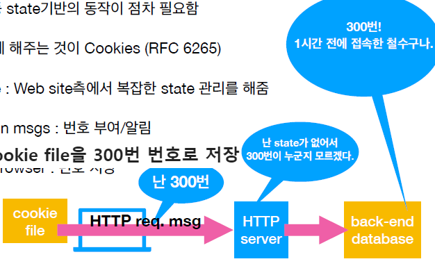 - simple stateless protocol: 저장을 하지않고 client 측에서 그때그때 필요한 것을 요구하면 server는 요구에 대한 단순 응답을 해준다.