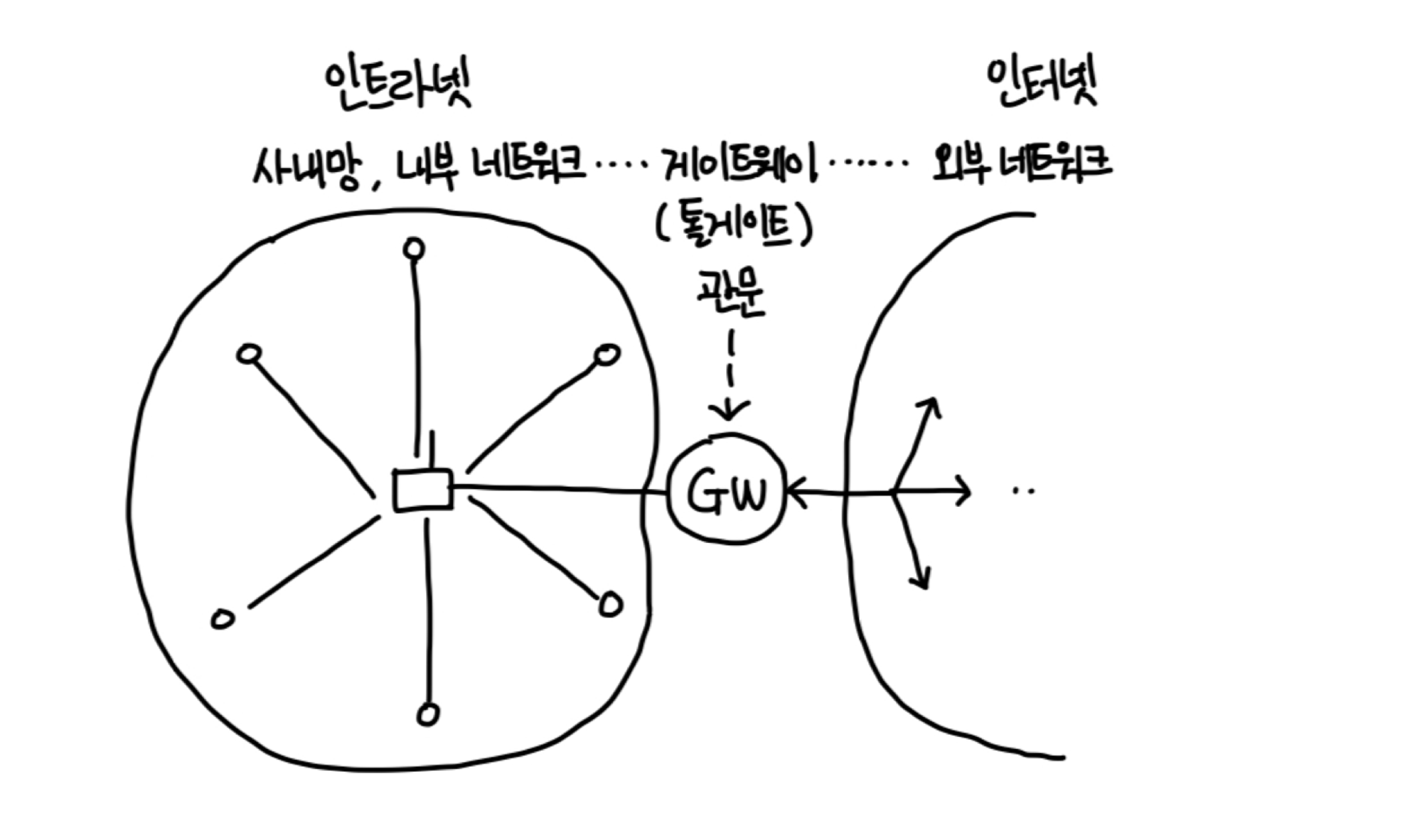 사내 네트워크린 인트라넷이 내부 사용뿐만 아니라 외부와 연결되고 싶을 때 게이트웨이를 통해 연결할 수 있다.