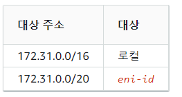 위 사진에서 destination, target이 있고, 각각 목적지 IP와 target 게이트웨이를 정의해둔 것이다. 특정 게이트웨이로 들어오는 특정 외부IP는 VPC 내에 있는 많은 사설 IP 중에 어떤 사설 IP로 가라고 명시해 둔 것이다.